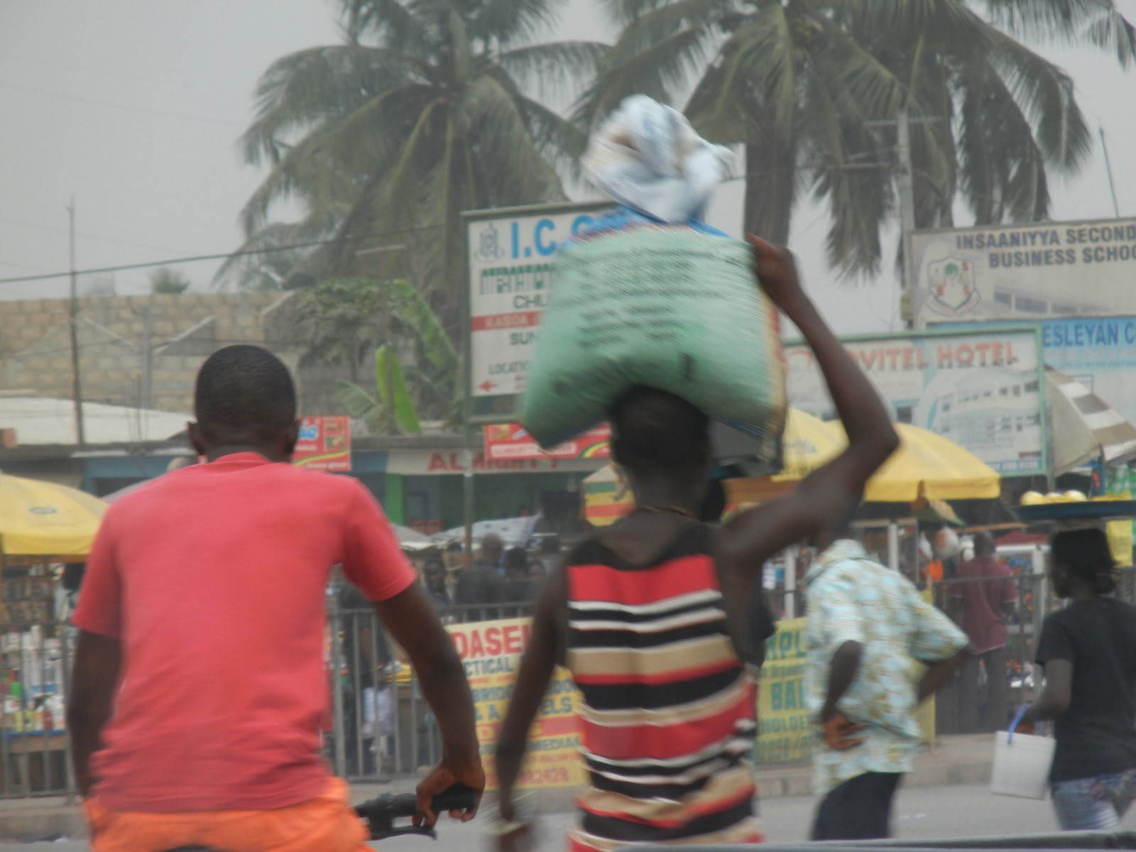 Just wanted to mention how remarkable I think it is that the men and women here in Ghana carry so many things on their heads. Many of the women carry things on their heads while even carrying babies and young children on their backs, not to mention they are not just walking to the corner store, but may be walking for miles. They walk for long periods of time on uneven surfaces while carrying all of this weight in the heat, probably without any water. AMAZING....